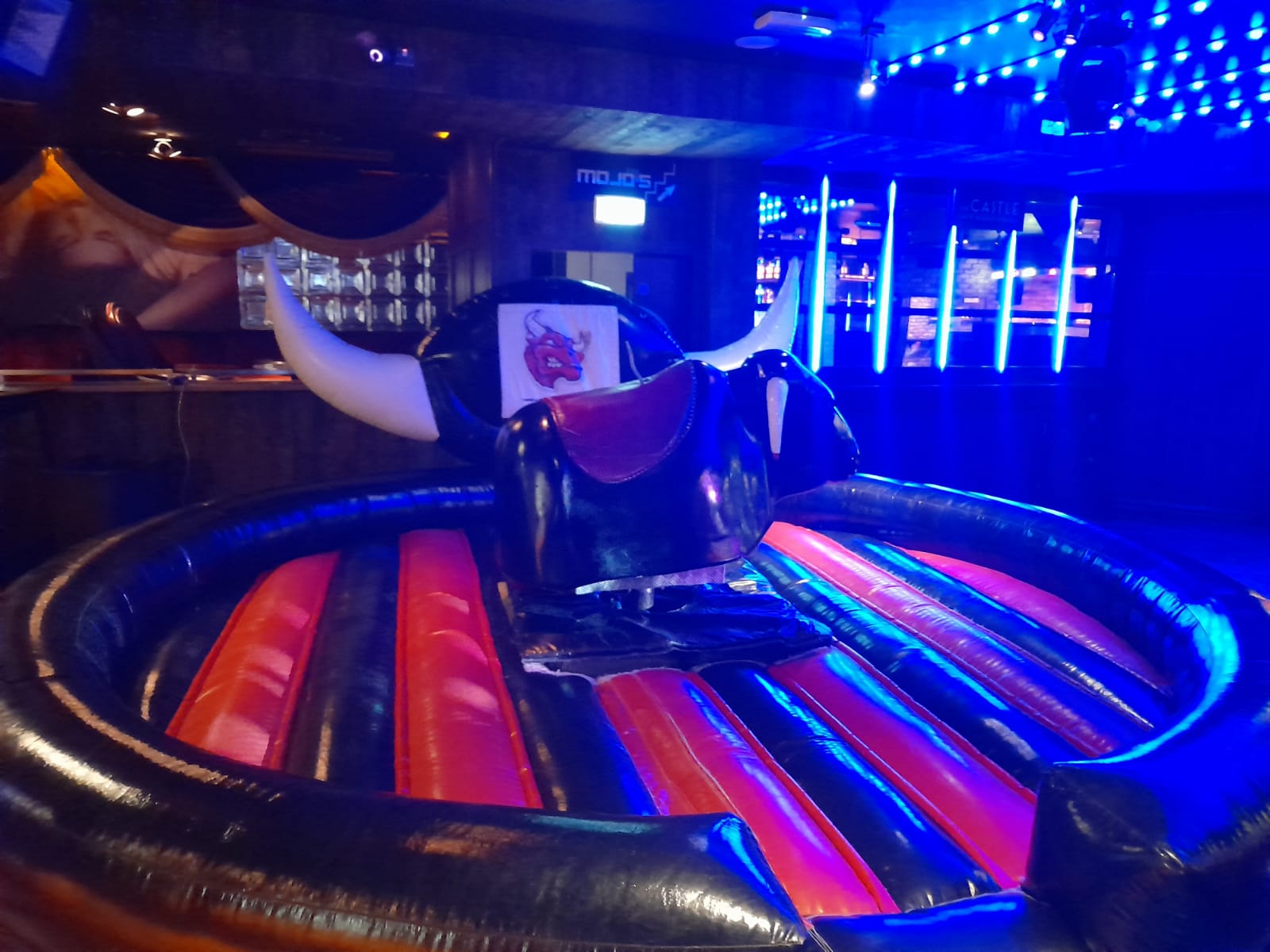Our Rodeo Bulls can be set up in pubs, nightclubs, sports halls, community centres and of course in peoples houses once there is sufficient access and space. We are fully insured with public and employers liability.