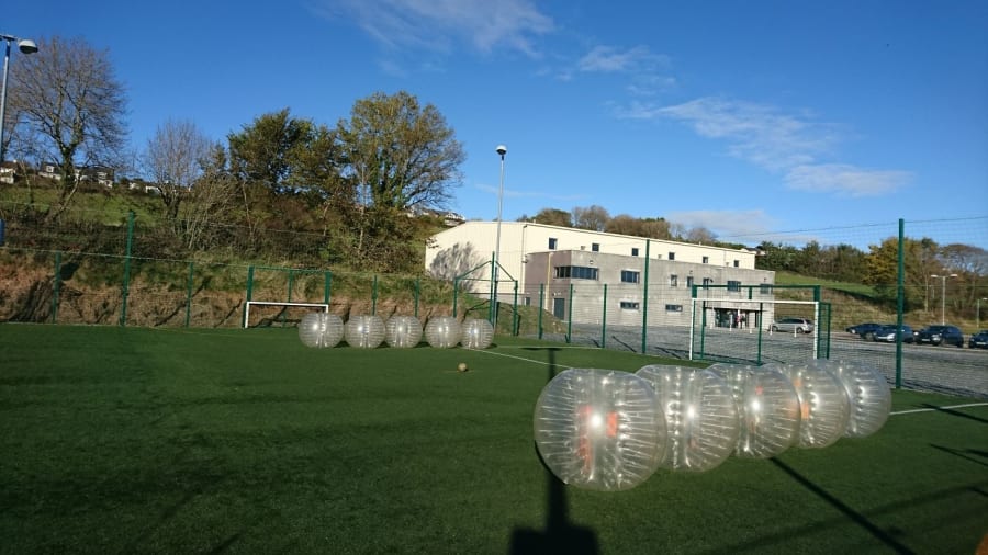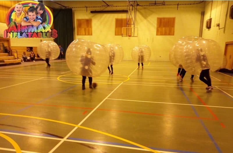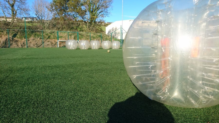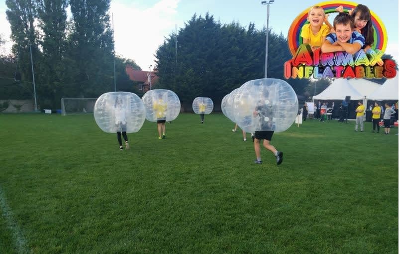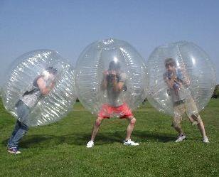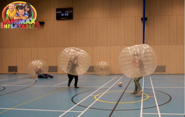 Bubble Football takes the traditional game of football and gives it a hilarious twist! Players get inside large inflatable Zorbs that fit above your knees and over your head, and the game begins. Crash, bump, and roll into each other as you try to score goals while having an absolute blast!