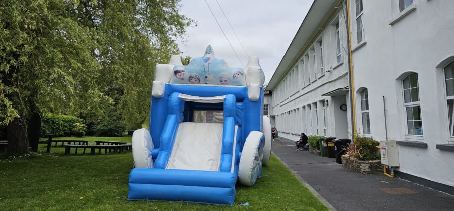 All the little princesses out there will love the Frozen Carriage. This is visually stunning bespoke design is going to appeal to all fans of the film Frozen. Displaying all your favourite characters from the hit film, including Elsa, Anna & Olaf, you will not be disappointed when you see this amazing looking bounce & slide carriage inflated in your garden.