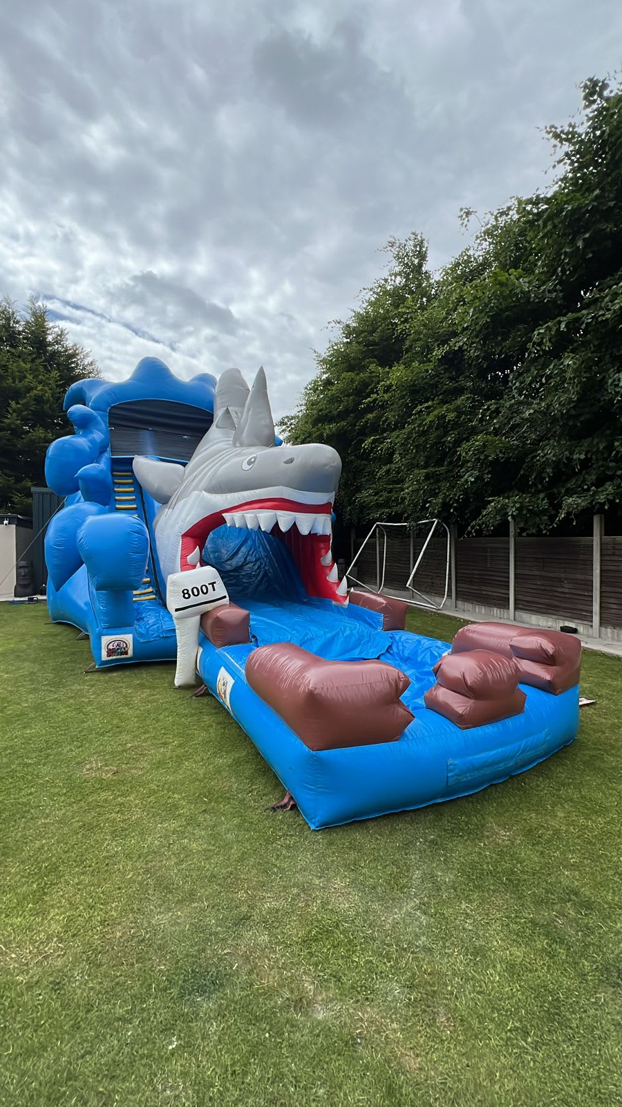 I think all you can say when you see our JAWS Inflatable Waterslide is WOW, and that wouldn't even do it justice. The pool area alone can hold over 500 litres of water! We are the only Company supplying Waterslides with the pool section attached at the bottom. Measurements: 11m L x 5m W x 6m H.