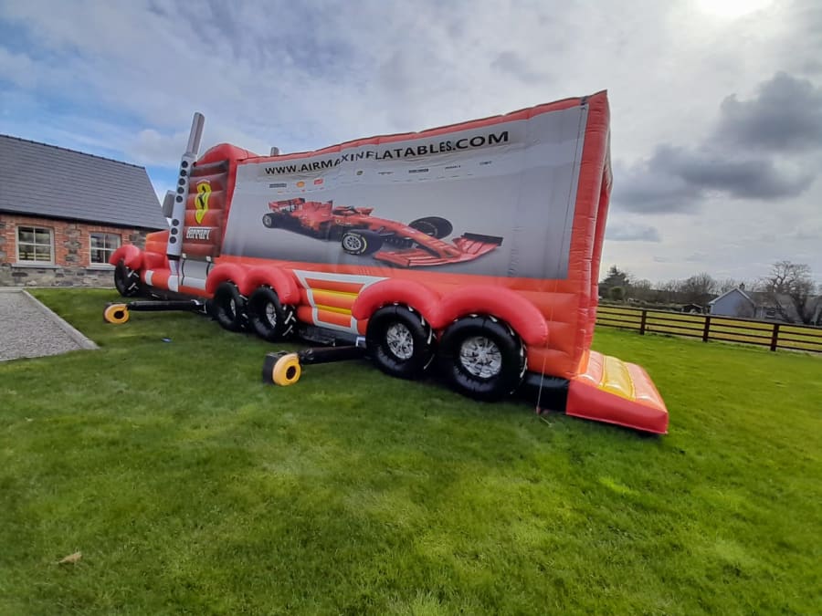 This nearly life-size truck will keep the kids entertained for hours fully covered from back to front with a showerproof cover has not 1 but 2 tunnels style obstacles your kids can race their way through not forgetting the inflatable pillars to make it that little harder and of course all kid's firm favourite climbing wall with giant slide out the back of the truck.