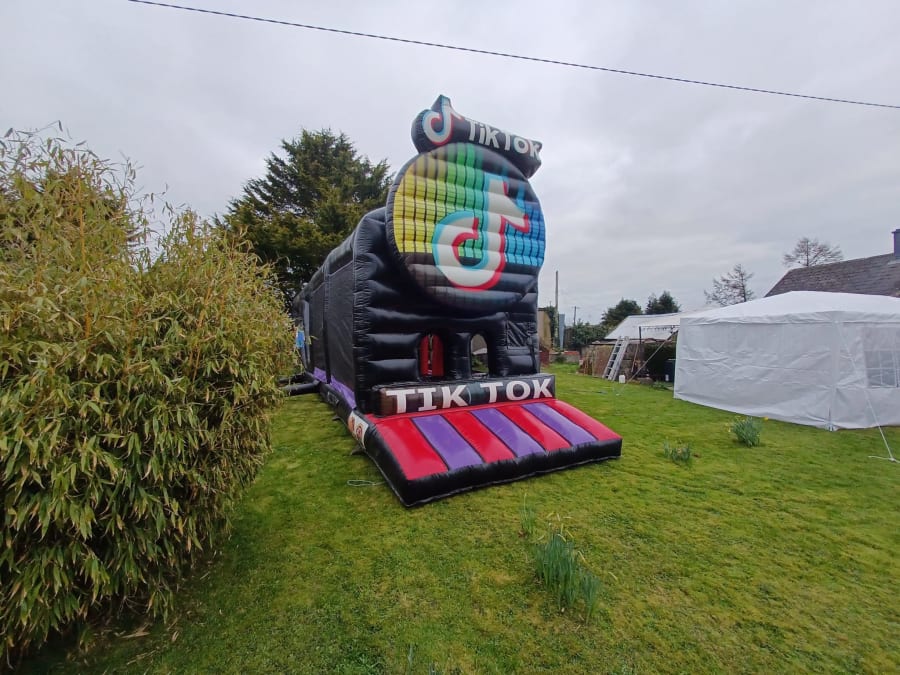 Looking to hire one of the most spectacular obstacle courses to enter the Market, the all Tik Tok Obstacle Course 3D - HD. A brand-new design to Airmax, this inflatable is another new addition to our TikTok range. It has the option to be used also as a waterslide it's great for the younger kids that might find our huge waterslides just a little bit too daunting. Keep them entertained for hours with the bounce area and dry/wet slide.