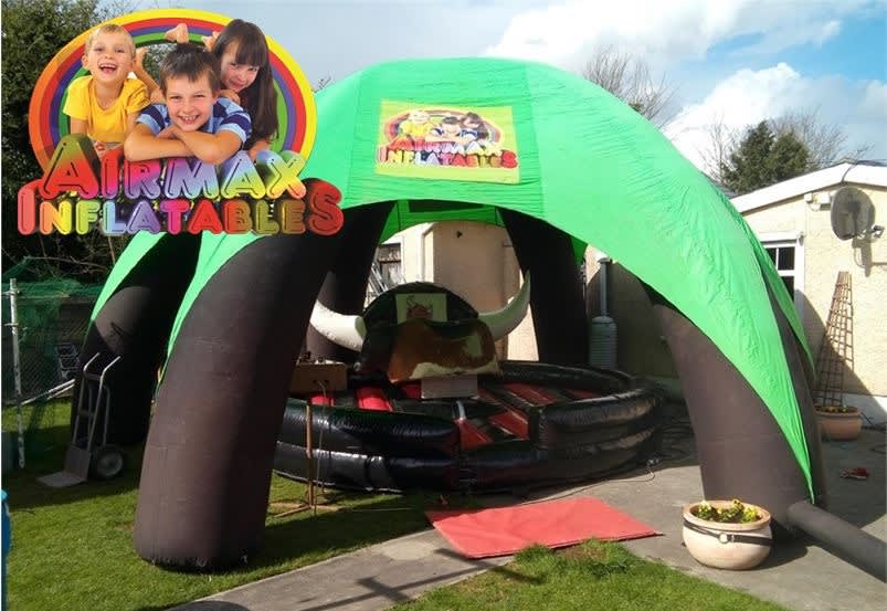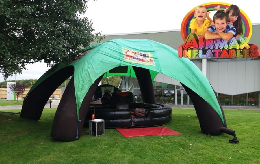 Inflated in a matter of minutes and measuring in at 20ft x 20ft the Inflatable Marquee is a quick and easy cover to stand up against light showers.It can also be used as a cover for our Rodeo Attachments if your event is outdoors at a discounted price.