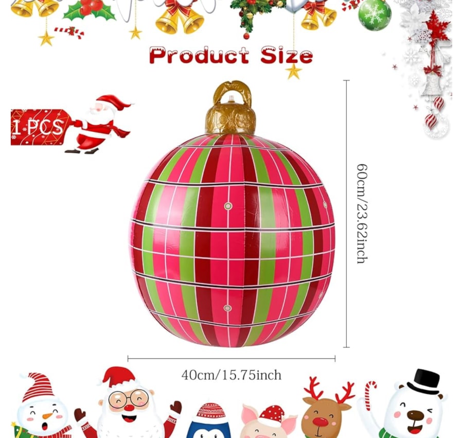 πŸŽ„ Elevate your holiday decor this season with our eye-catching Christmas Large Inflatable Bauble! Made from durable PVC, these giant inflatable baubles are designed to withstand all kinds of weather, from rain to snow. Whether you want to make a bold statement in your front yard or add a festive touch to your garden, these baubles will not disappoint.