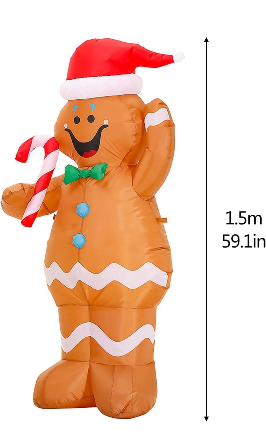 Transform your festive celebrations with our delightful Inflatable Gingerbread Man. Standing at an impressive 1.5 meters tall, this charming figure is dressed to impress in a red hat and green bow tie, arms open wide for a warm embrace. Perfectly capturing the spirit of Christmas, this gingerbread man is a must-have ornament for anyone looking to bring joy and warmth to their home or party. Whether it's for your family, friends, or the entire neighbourhood, this inflatable character is sure to spread smiles all around!