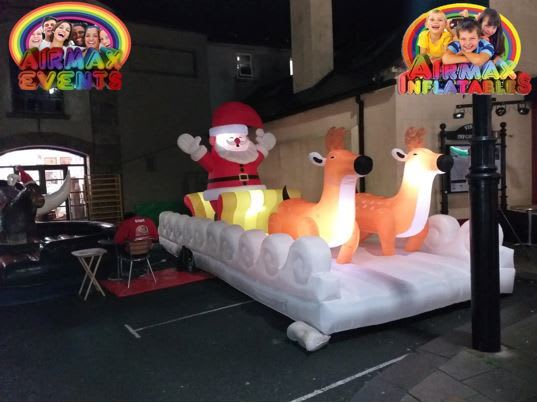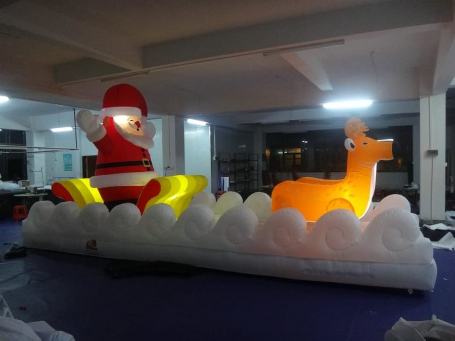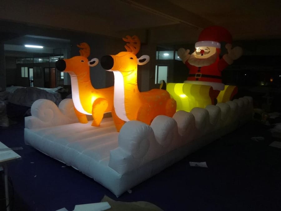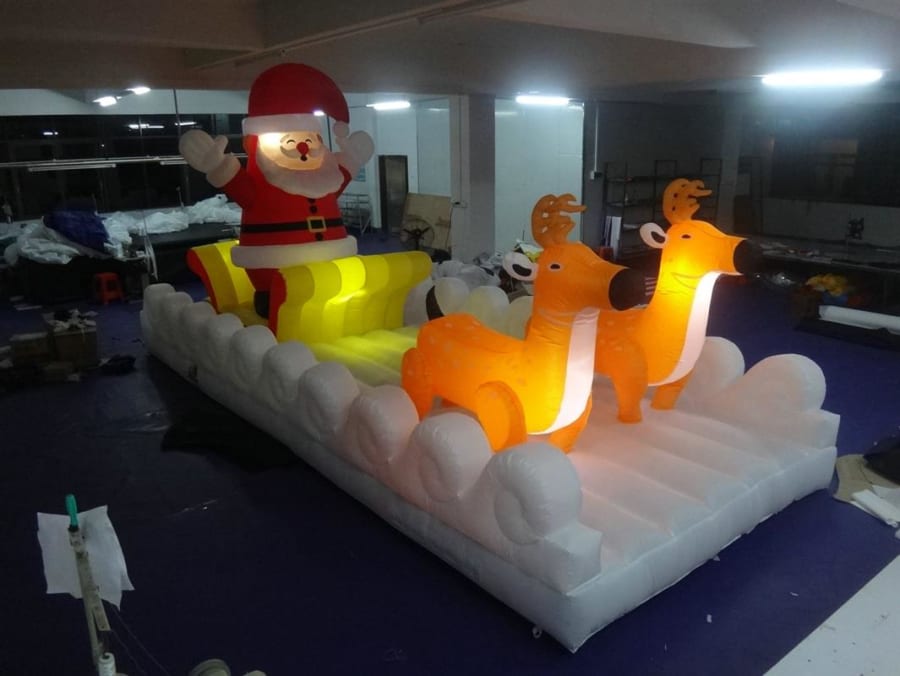Inflatable Lighted Santa in Sleigh with Reindeer