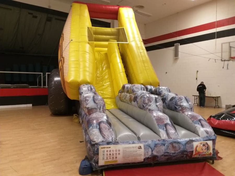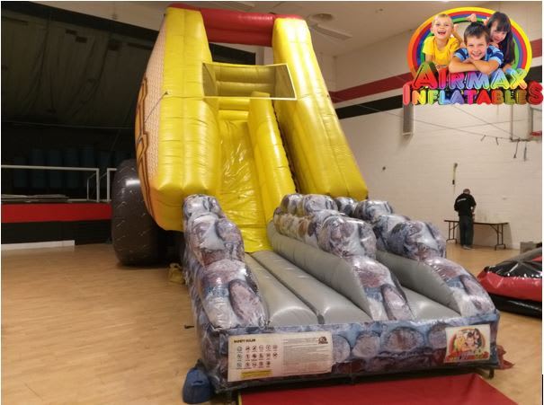 This great looking slide looks awesome, it will draw the crowds and is perfect for community events, school functions & private parties. Big enough to ensure a thrill! Compact enough to fit in your yard! Measurements: 20 ft H X 13 ft W X 35 ft L