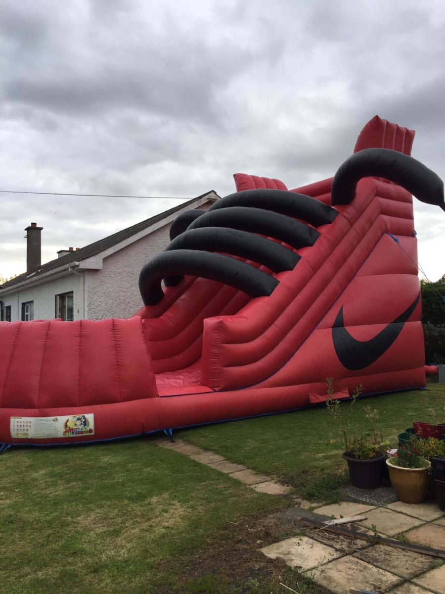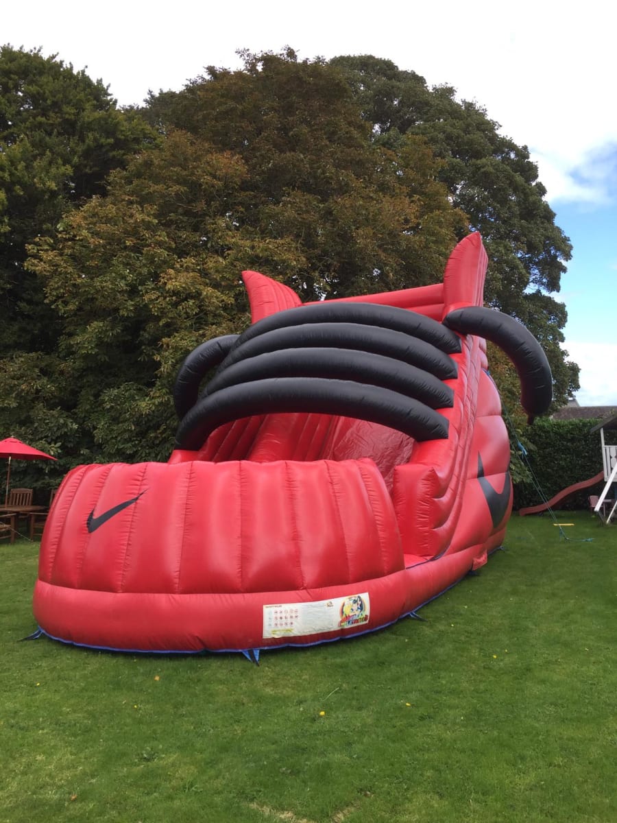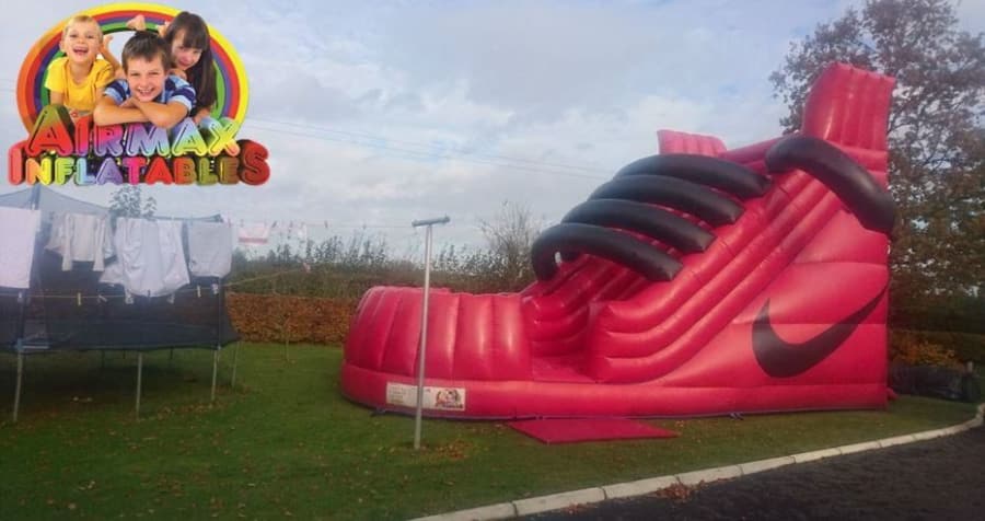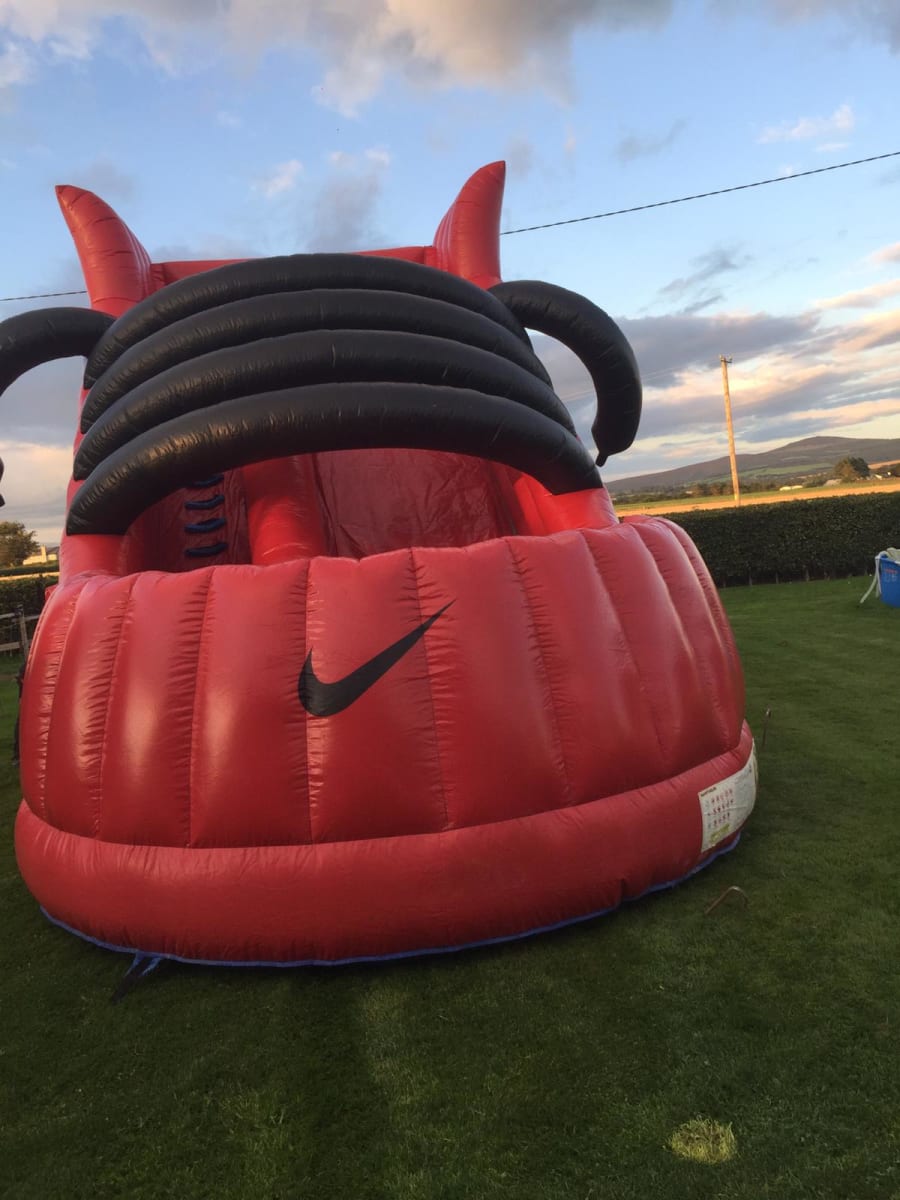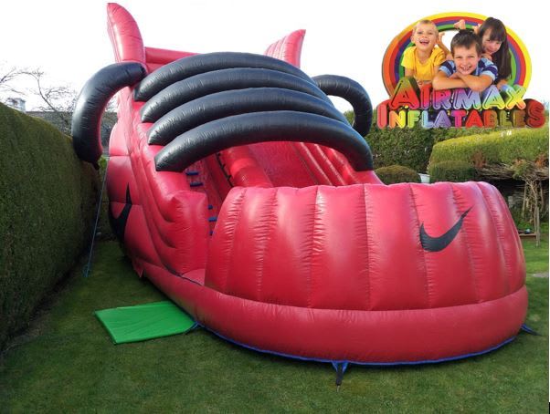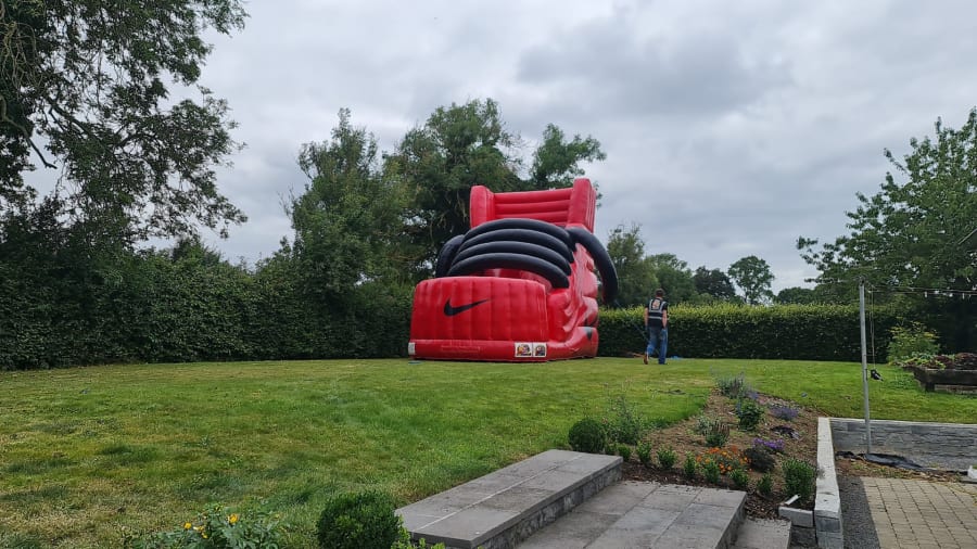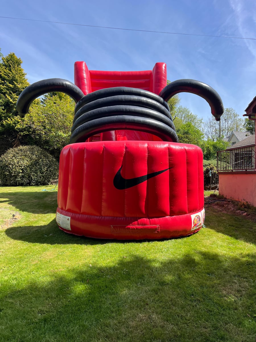 We all have worn Nike Runners, and now you can hire our exclusive Nike Runner Slide. Measuring in at over 20ft in height, slide down on our high gloss slip sheet underneath the black laces to the toe area, where you find a generous bounce area. This is one of our bestsellers and is suitable for corporate events, sports days, family fun days, field days, shows, festivals and of course birthdays, communions and confirmations.
