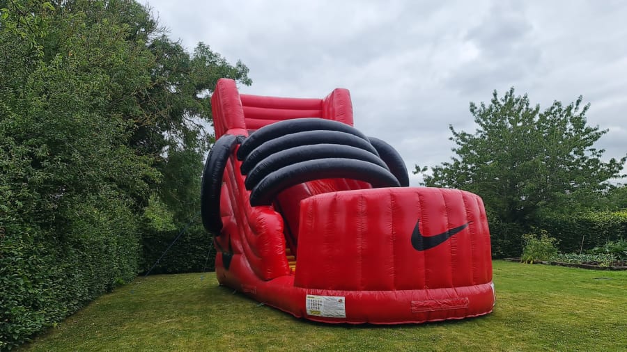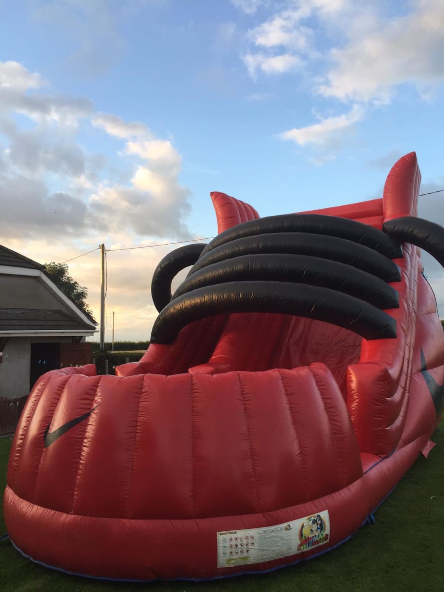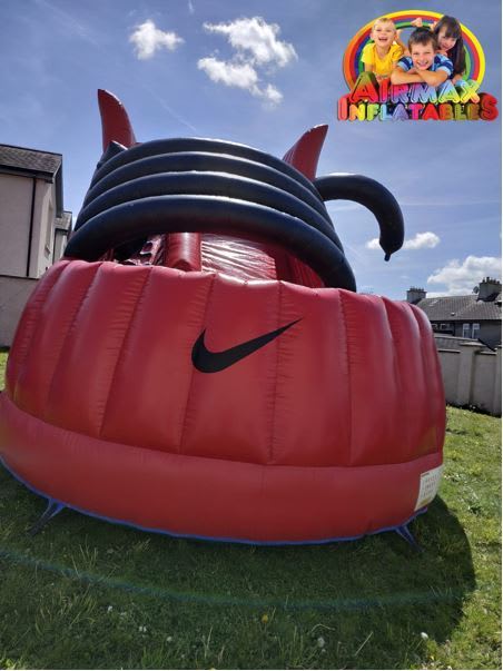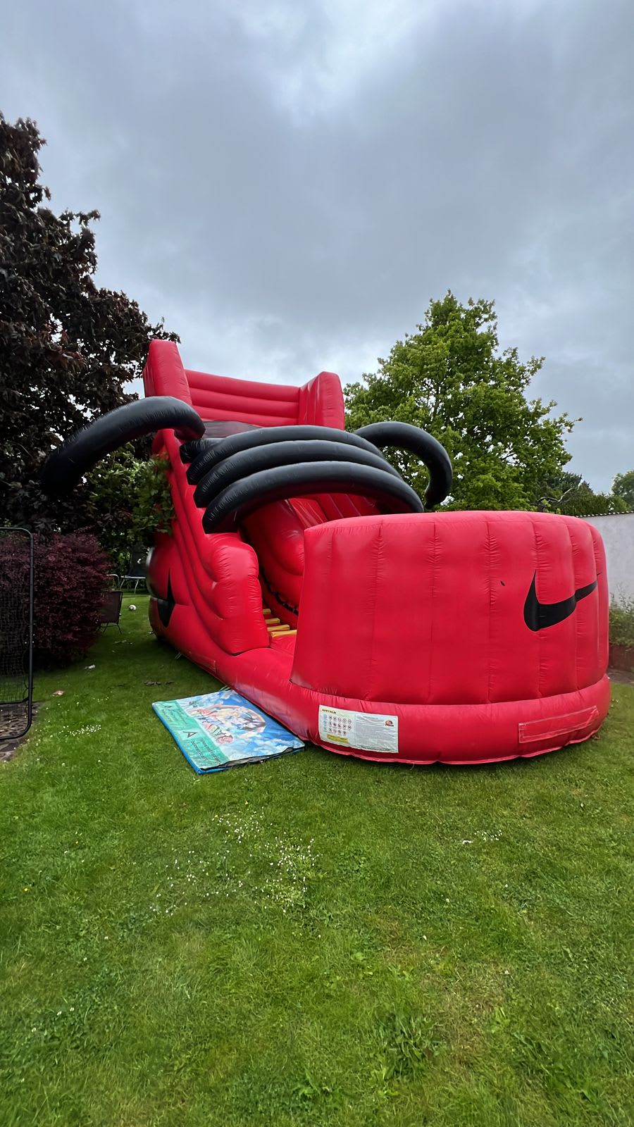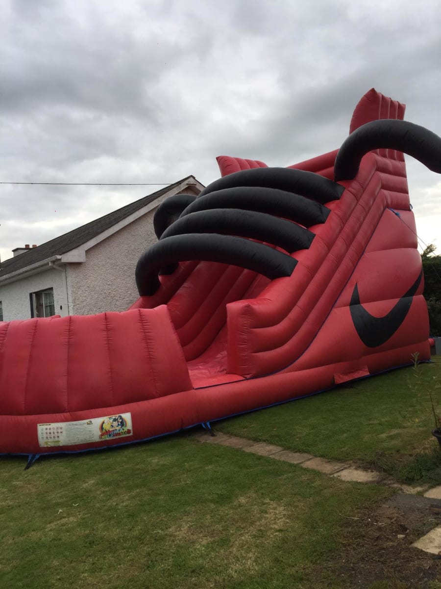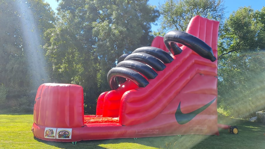 We all have worn Nike Runners, and now you can hire our exclusive Nike Runner Slide. Measuring in at over 20ft in height, slide down on our high gloss slip sheet underneath the black laces to the toe area, where you find a generous bounce area. This is one of our bestsellers and is suitable for corporate events, sports days, family fun days, field days, shows, festivals and of course birthdays, communions and confirmations.