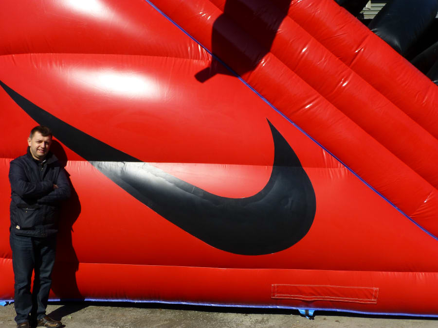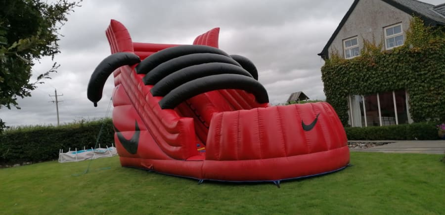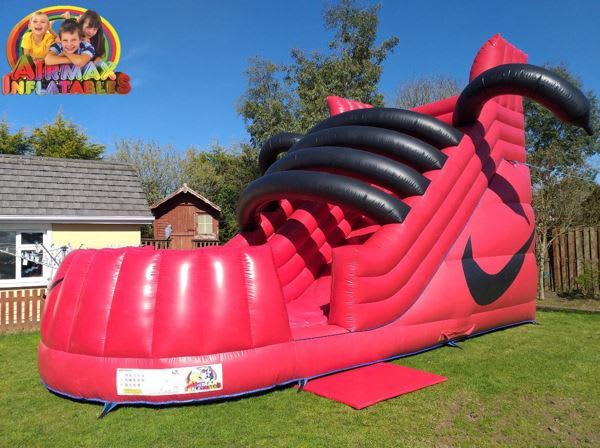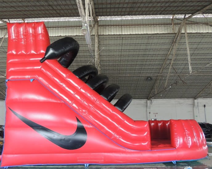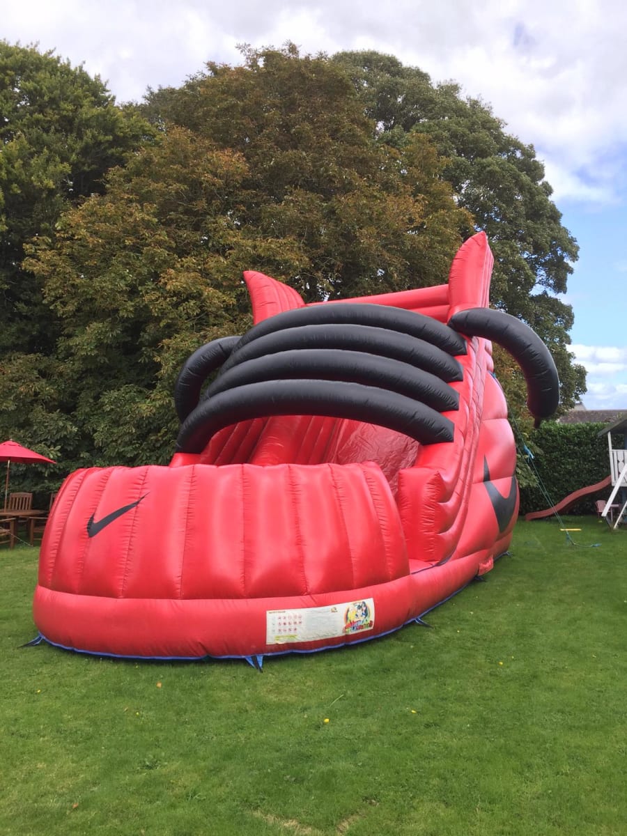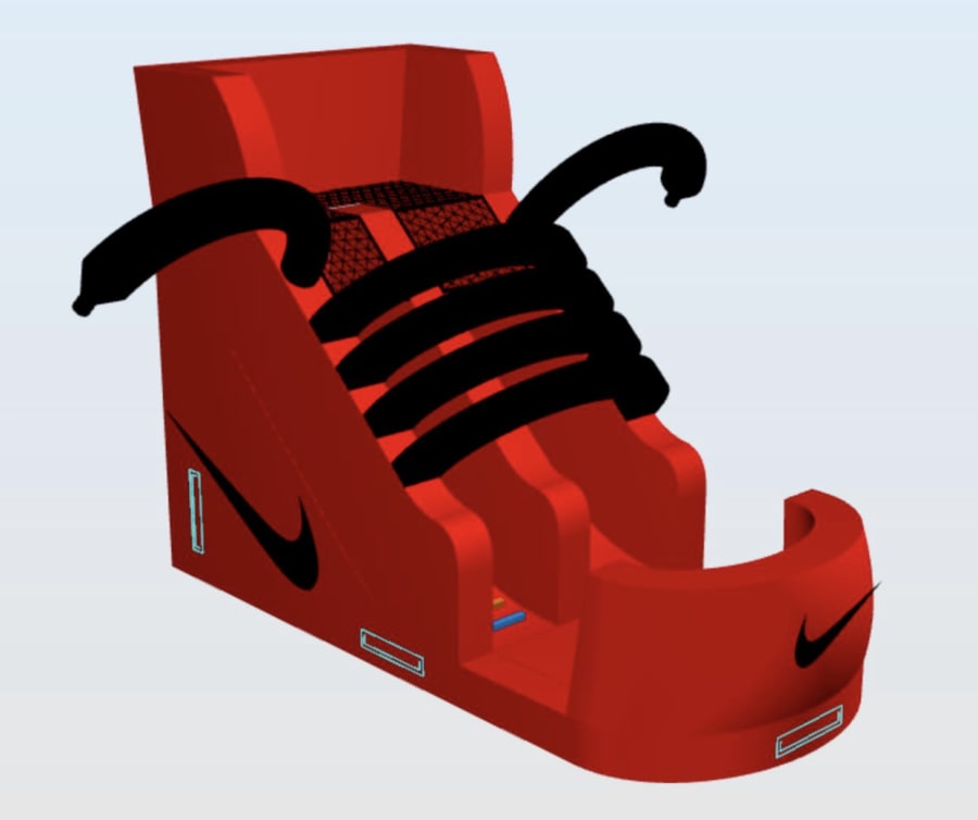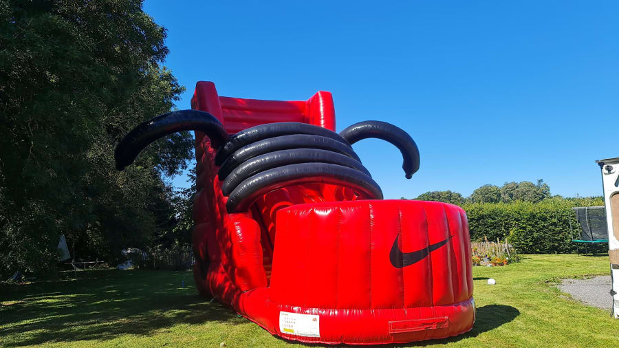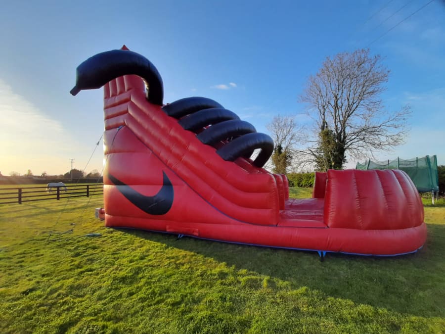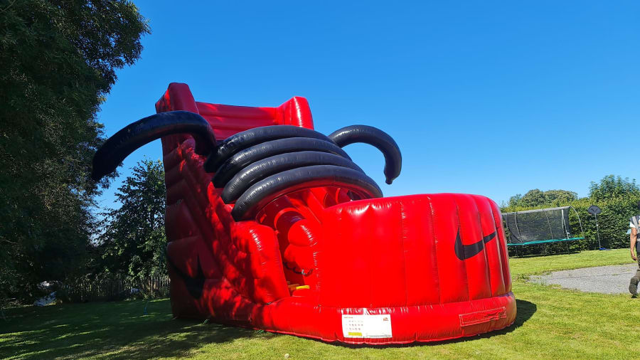 We all have worn Nike Runners, and now you can hire our exclusive Nike Runner Slide. Measuring in at over 20ft in height, slide down on our high gloss slip sheet underneath the black laces to the toe area, where you find a generous bounce area. This is one of our bestsellers and is suitable for corporate events, sports days, family fun days, field days, shows, festivals and of course birthdays, communions and confirmations.