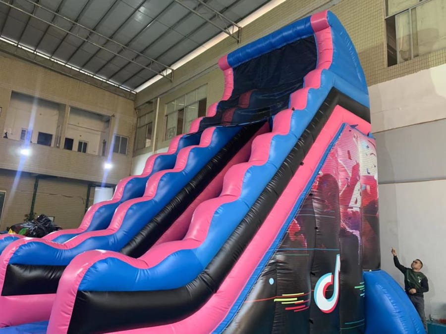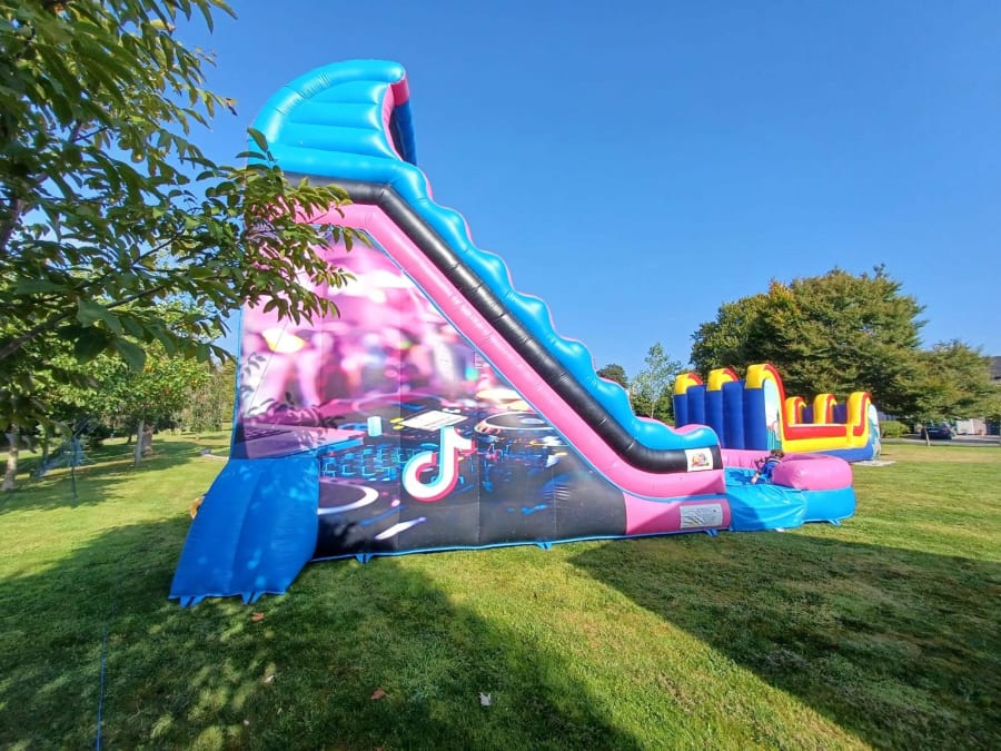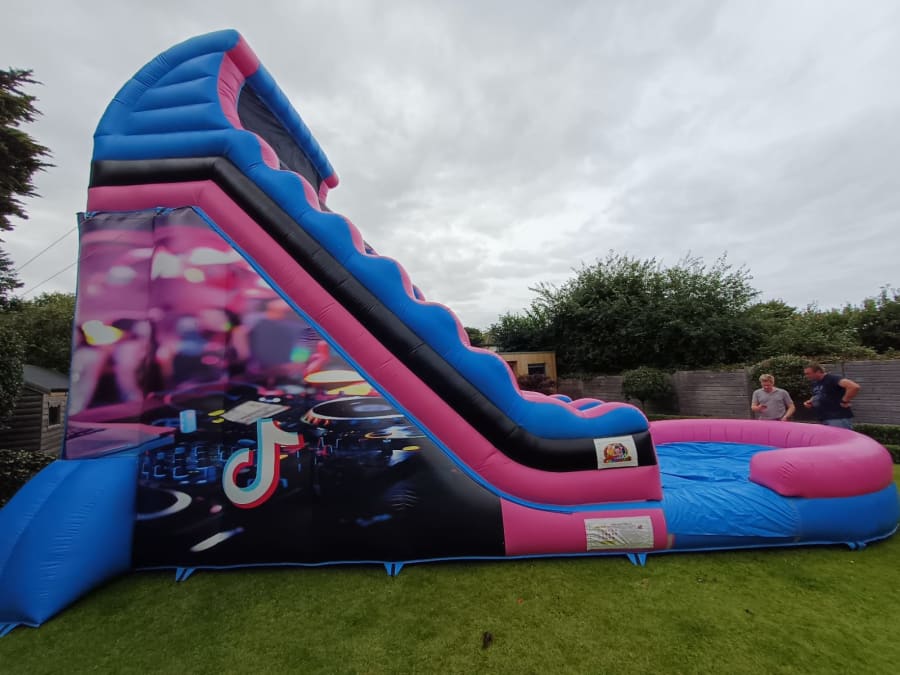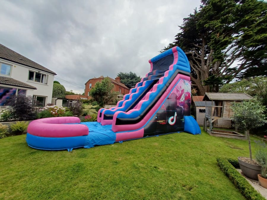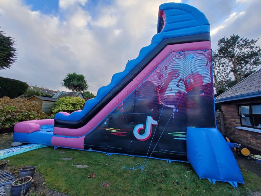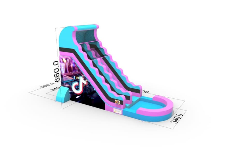 Brand new to our TikTok range of inflatables & guaranteed to bring the wow factor to any party or event! Over 20 feet in height and 33 feet in length! The fun doesn't stop there though as this slide can also be used as a dry inflatable slide, so everyone can stay nice and dry with the new added inflatable pool.