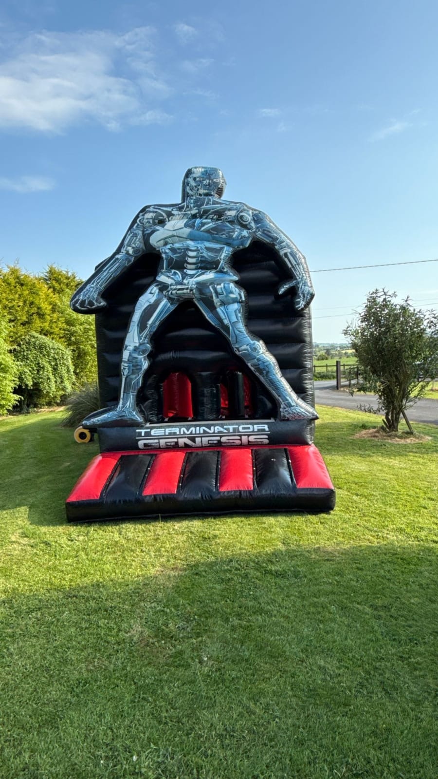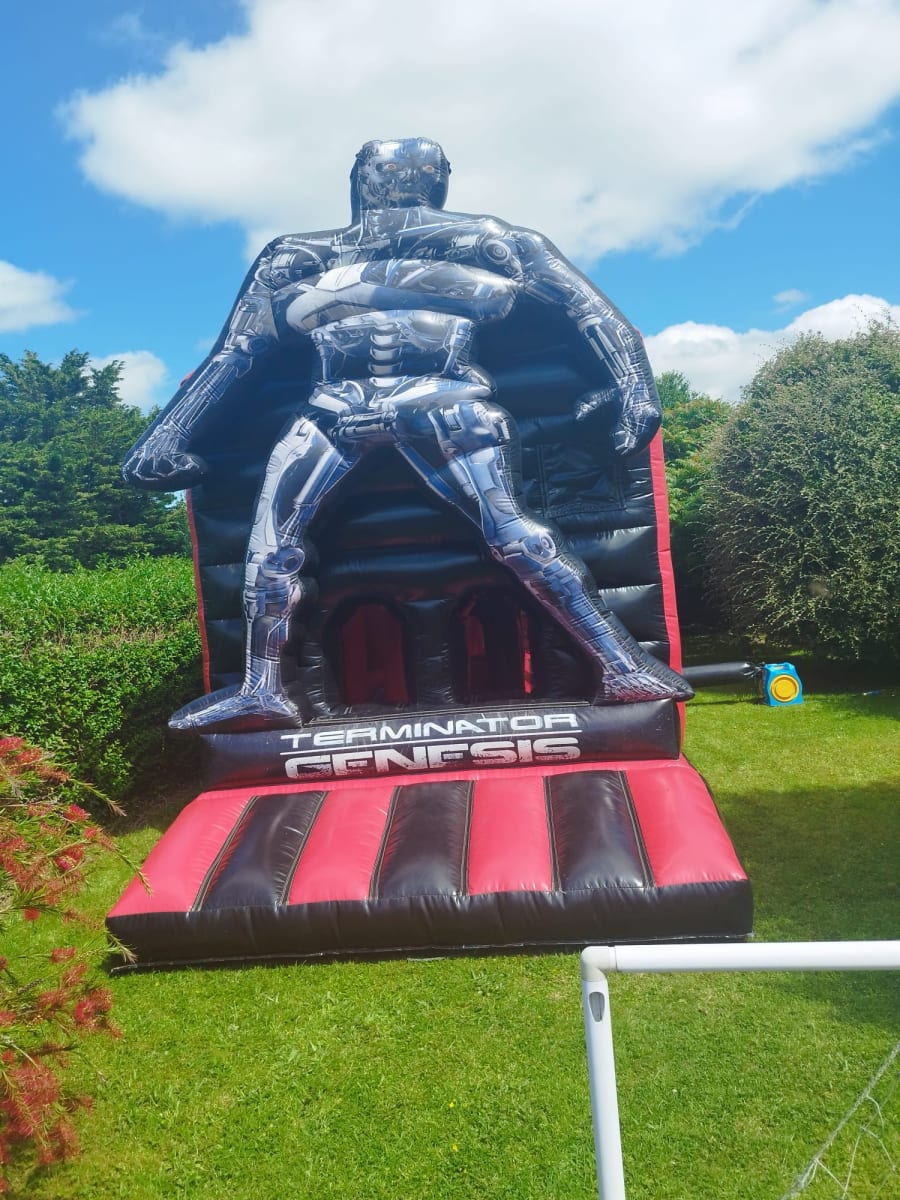 This unit will really WOW all the kids and all your guests. At the front of the unit we have a huge 3D-HD giant inflatable terminator figurine. This will keep the kids entertained for hours, fully covered from back to front with a showerproof cover to protect from any bad weather.