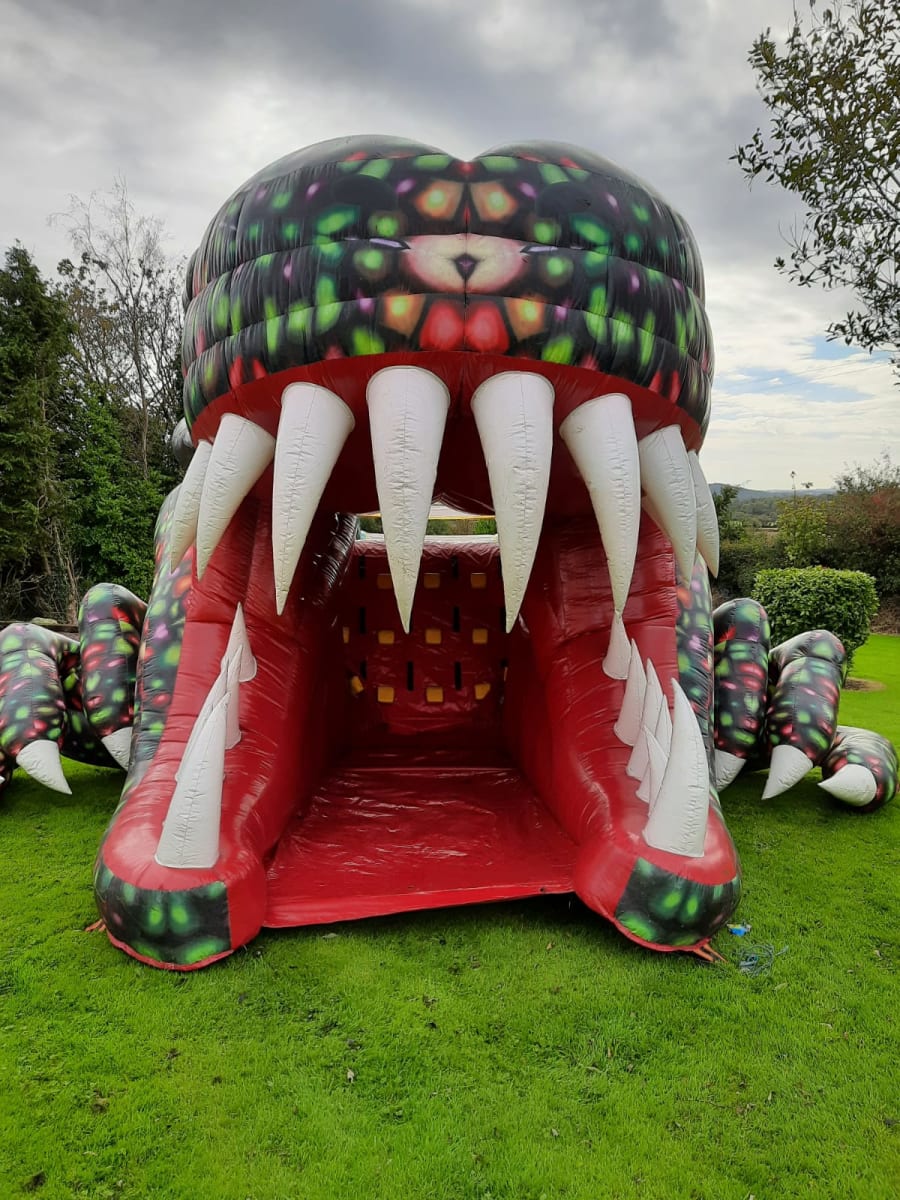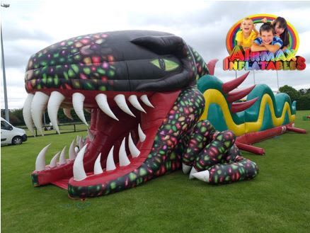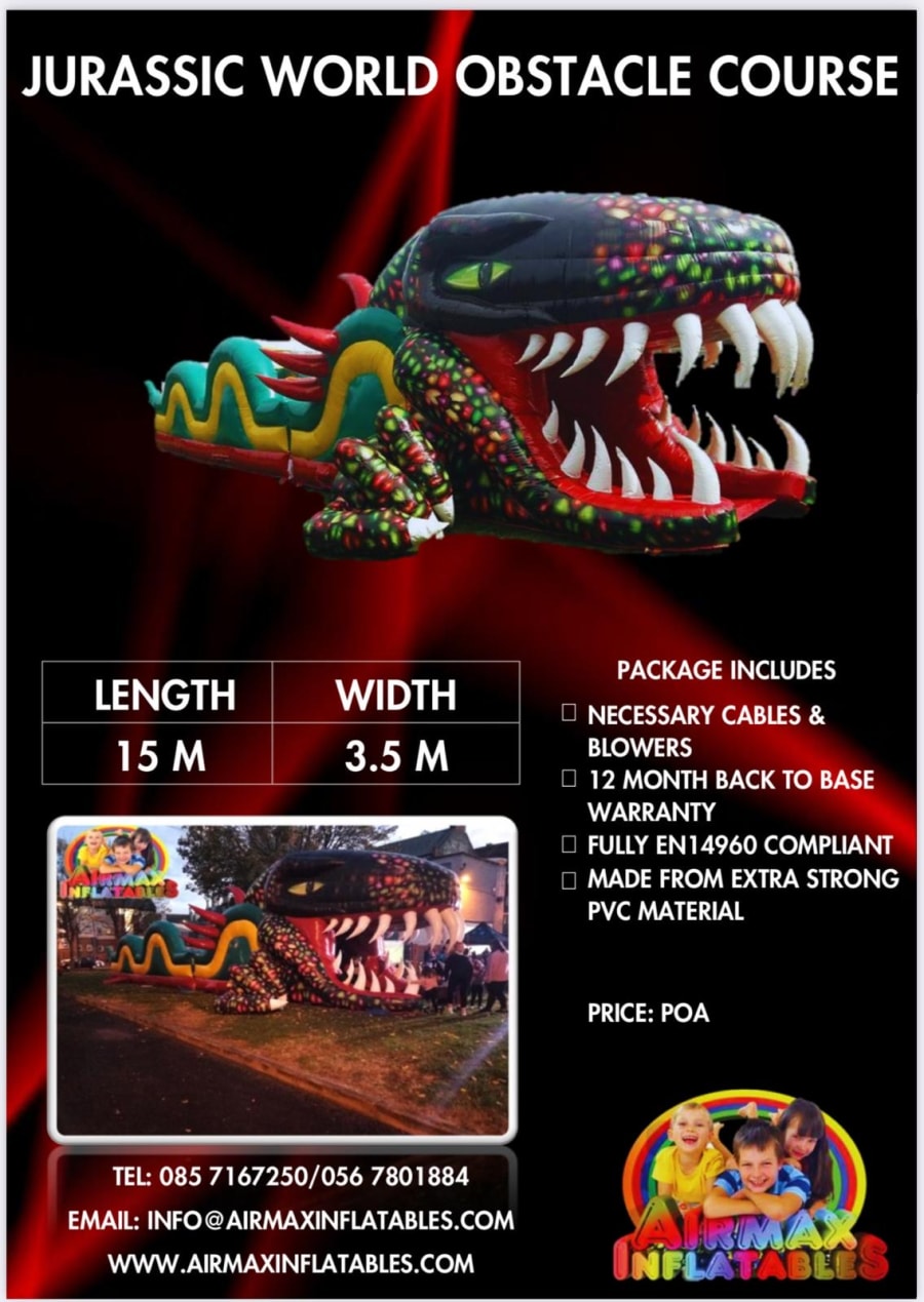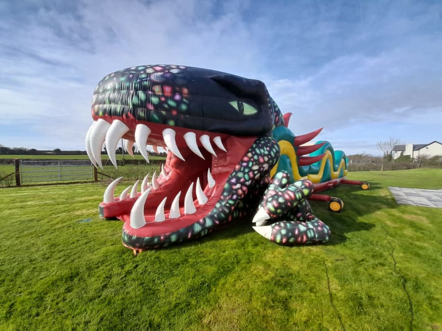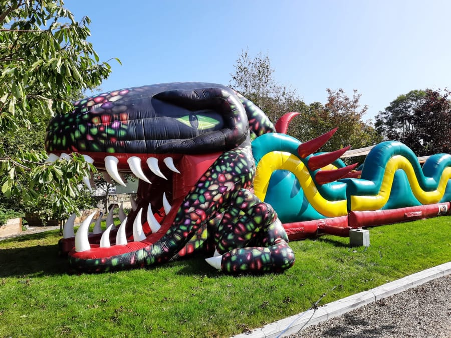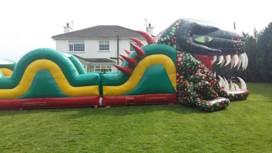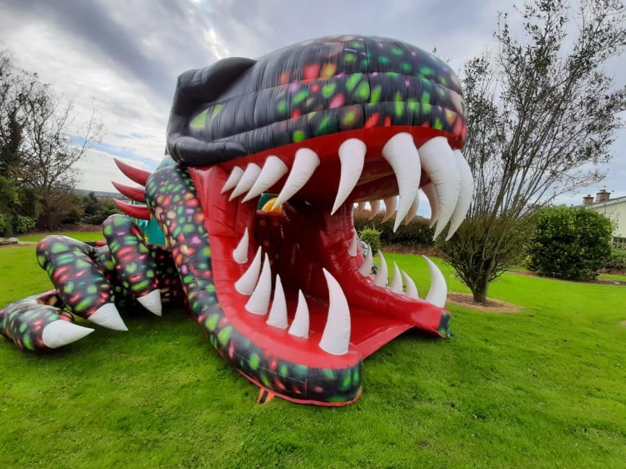 You've seen our Inflatable Dragon Obstacle Course, now meet his big brother. Measuring in at 50ft long, this Dinosaur/Dragon hybrid is the biggest, baddest and most striking of our Obstacle Courses.