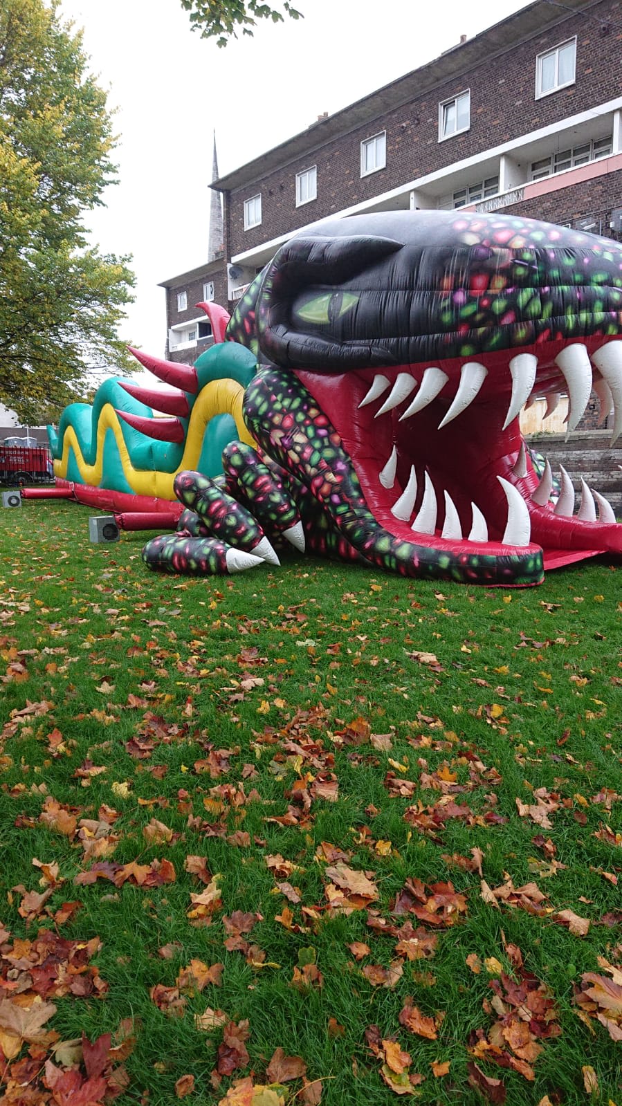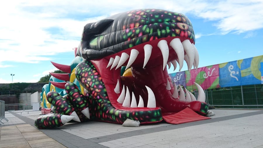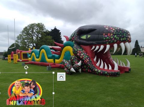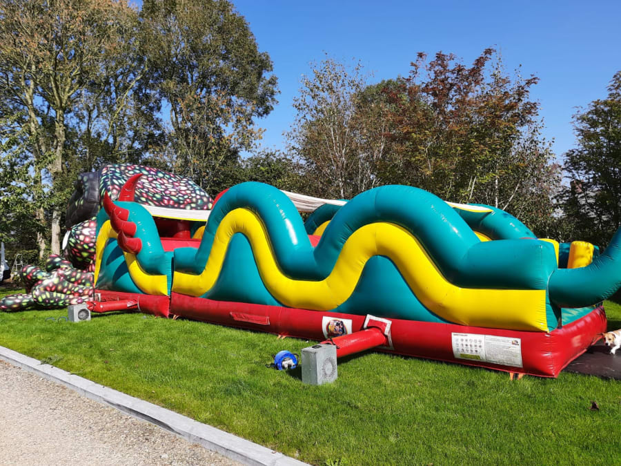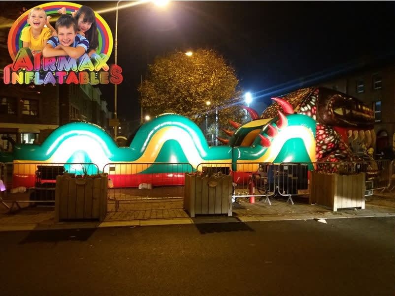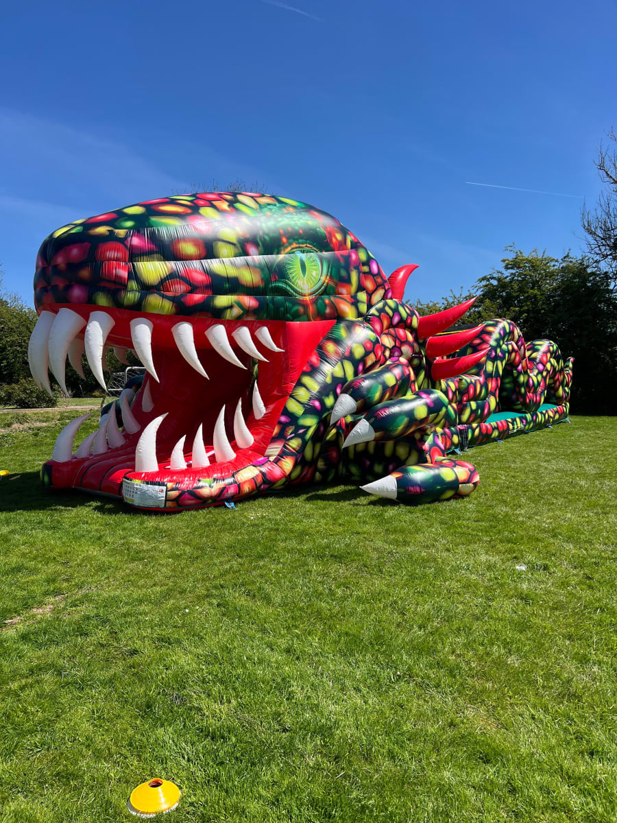 You've seen our Inflatable Dragon Obstacle Course, now meet his big brother. Measuring in at 50ft long, this Dinosaur/Dragon hybrid is the biggest, baddest and most striking of our Obstacle Courses.