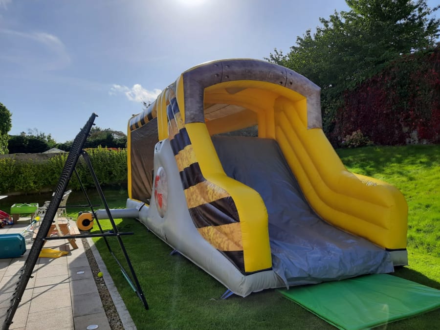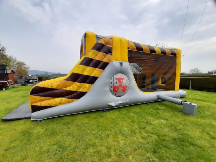 The new Atomic Obstacle Course is measuring in at 32ft in length and although compact it still has all your favourite Obstacle Course activities including a slide, climbing frame and inflatable pillars.