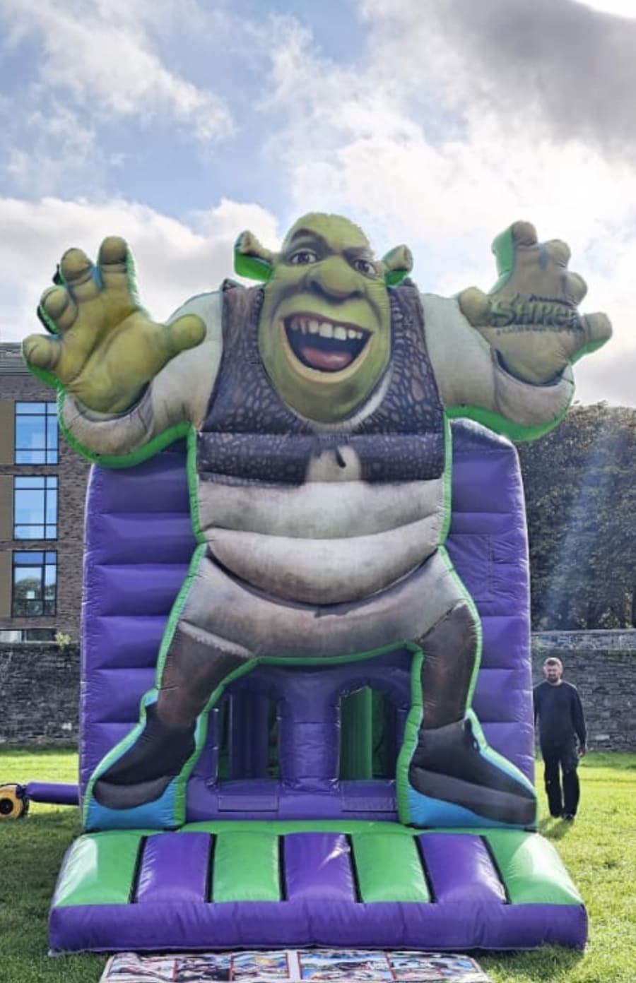 At the front of the Shrek 3D-HD inflatable obstacle, you have a huge 15ft inflatable 3D-HD Shrek Figurine. This unit has the WOW factor and will keep the kids entertained for hours..