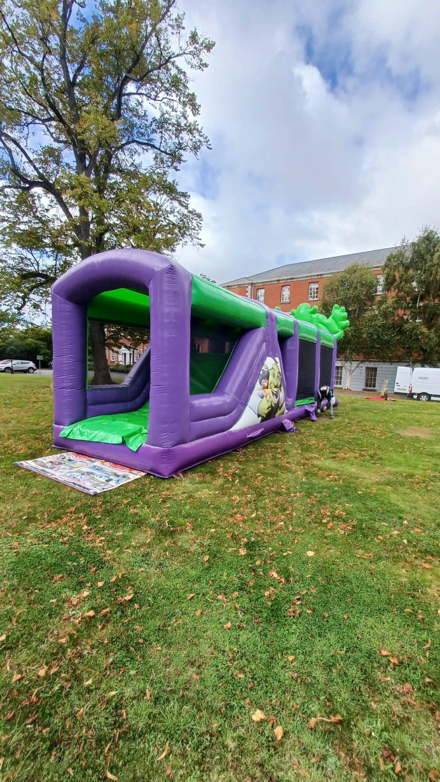 This giant inflatable Shrek Obstacle Course has already been one of our bestsellers here at Airmax Inflatables. Again action packed, huge bounce area, inflatable pillars, tunnel, climbing wall and a massive slide to the front.