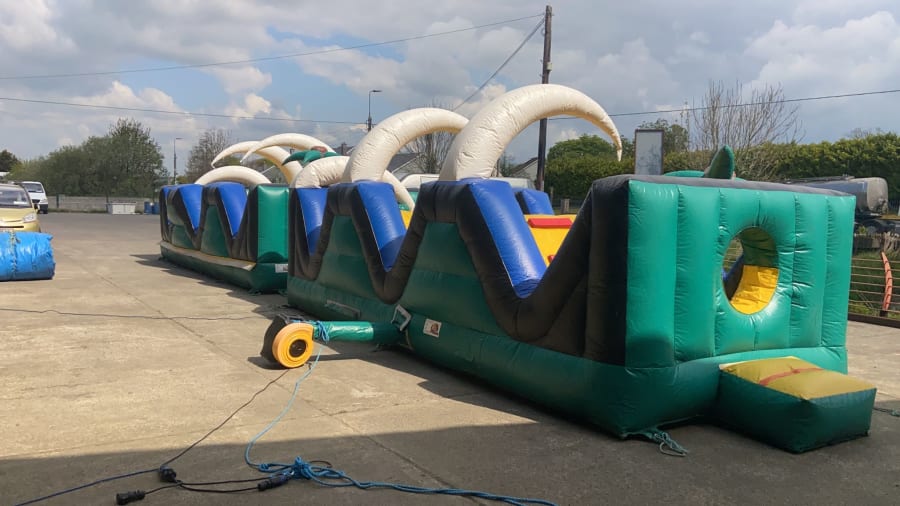 You've seen our Inflatable Dragon Obstacle Course, now meet his big brother. Measuring an impressive 60ft long, this dinosaur obstacle course is the biggest, baddest and most striking of all.
