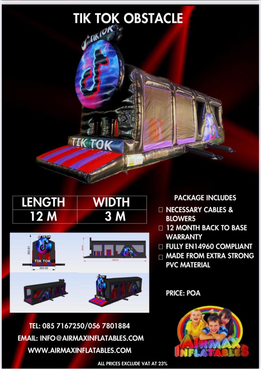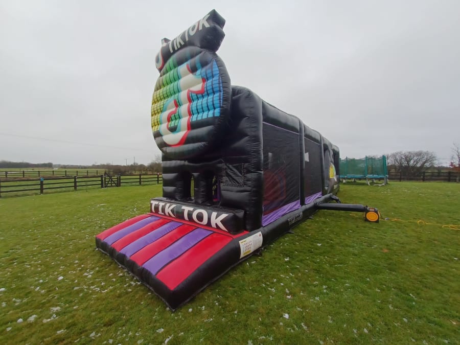 Looking to hire one of the most spectacular obstacle courses to enter the Market, the all Tik Tok Obstacle Course 3D - HD. A brand-new design to Airmax, this inflatable is another new addition to our TikTok range. It has the option to be used also as a waterslide it's great for the younger kids that might find our huge waterslides just a little bit too daunting. Keep them entertained for hours with the bounce area and dry/wet slide.
